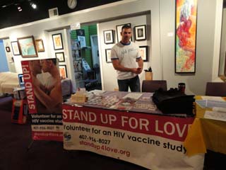 Study recruiter Keith Barsky talks to potential volunteers at a health fair near downtown Orlando.