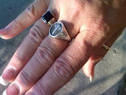 [Photo, at left: Cyndi Cole displays the ring she received on the 20th anniversary of her employment with the space shuttle program]