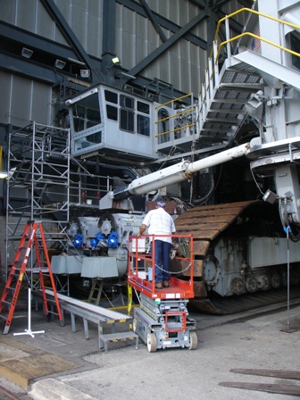 NASA's Crawler Transporter Gets Upgrade ![]() At the Kennedy Space Center retired Space Shuttles are being readied for museums. But there's one piece of equipment at Kennedy that's even older and it's not going away. Nasa's massive crawler transporter is getting an upgrade for carrying the next generation of deep space rockets and spacecraft. It's the only machine with enough muscle to move Apollo rockets and space shuttles out to the launch pad, and after nearly 50 years on the job NASA's decided there's still no better way to transport heavy loads than the crawler. The crawler transporter is about as wide as a six lane highway and higher than a two story building, with huge caterpillar treads at each of its four corners. Carrying the mobile launch platform- a giant grey slab of metal- and a rocket or space shuttle on top, the crawler en route for the launch pad was like a small skyscraper rolling slowly down a highway