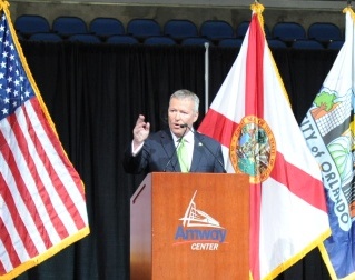 Orlando Mayor Buddy Dyer Goes "Green" in State of Downtown Address ![]() Oct 03, 2012 | WMFE - Orlando Mayor Buddy Dyer unveiled a host of ambitious new green initiatives in his annual State of Downtown address Wednesday morning. Dyer delivered his speech inside the new environmentally-friendly Amway Center. He said in the past four years, GreenWorks Orlando has spurred changes such as a twenty percent reduction of energy consumption by the city government, the addition of nineteen miles of sidewalks and bike paths, and the conversion of nearly all traffic lights to energy- and cost-efficient LEDs. “These initiatives and many others save the taxpayers more than a million dollars a year,” Dyer said. “And we’re on target to reach savings of $3 million a year within the next two years. Now that’s real money which can be used to pay for police, fire protection, parks or ball fields, instead of paying power bills.” The city’s long-range sustainability goals include everything from planting one tree for every Orlando resident, to expanding mass transit, bike- and car-sharing projects, to switching from traditional to LED bulbs for streetlights. Additional plans include installing charging stations for electric vehicles and retrofitting at least 50 percent of Orlando homes with more efficient energy systems. In the immediate future, Dyer says Orlando residents will receive 95-gallon recycling carts from the city and will no longer have to sort their recyclables into two small color-coded bins. “And this change will allow us to double the number of people that recycle in Orlando and double the amount of material that we recycle,” said Dyer. “It’ll also save us about $125,000 a year. We anticipate that single-cart recycling will be fully implemented citywide by Christmas.” Dyer also announced a new city website where residents can suggest new eco-friendly ideas and speak out on existing ones – cityoforlando.mindmixer.com. |