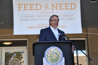 Winter Park Launches Community-Wide Effort to Feed the Need ![]() Winter Park is taking a new approach to the annual Feed the Need food drive to benefit Second Harvest food bank. This year it's a community-wide virtual fund drive. The innovative approach may be just what's needed in the wake of food stamp cutbacks. [Second Harvest Food Bank CEO Dave Krepcho speaks at the Feed the Need Kick-off] This year, instead of collecting canned goods, Feed the Need is collecting money online. People or businesses can register through the Winter Park Chamber of Commerce or the Second Harvest food bank websites to run their own food drive campaign. Participants commit to raising a minimum of $500 in funds. Second Harvest will then use the money to buy food for the needy. Second Harvest Food Bank C-E-O Dave Krepcho says cutbacks to the federal food stamp program make it a good time for a creative idea. “We constantly have to be looking at news ways to be approaching this problem of solving hunger in our community. You know, a lot of fine work has been done over the years, and continues to happen, but I don’t know if we can work any harder, we kind of have to work smarter,” he says. The Winter Park Chamber proposed the idea of a virtual food drive because Second Harvest’s food buying power is actually quite strong, so raising money could potentially have a bigger impact than collecting food items. Feed the Need kicked off November 1st, the same day cutbacks to the federal food stamp program were scheduled to kick in. |