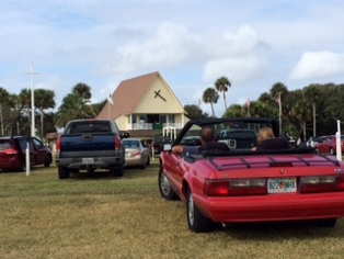 Daytona Beach Church Offers Drive-in Experience ![]() November 27, 2013 | WMFE--Americans are used to grabbing a burger at a drive-through restaurant, and, not so long ago, the trend extended to drive-in movie theaters. But, what about a drive-in church? One Daytona Beach congregation worships that way. [Photo by Amy Kiley] Daytona Beach Drive-in Christian Church is on State Road A1A, a picturesque merger of Florida weather and coastline, running past the Sea Dunes Apartments and the Fantasy Island Resort. The church is on a grass lot across the street from the Atlantic. An usher steps out of what looks like a parking attendant shack. She says dogs are welcome here. They get treats upon arrival. Human parishioners get worship aides and plastic ramekins of wine with tiny rectangles of bread under the lids. Those are for Communion. The relaxed atmosphere is intentional. Disciples of Christ leaders began services here in the 1950s to lure people who disliked “Sunday dress.” It was also a way to embrace the era’s drive-in fad. A handful of other denominations tried the approach, but the Daytona Beach church is one of the few congregations that survived. The church looks like a drive-in theater, and, in fact, it was one once. The congregation began Sunday services when the Neptune Theatre still showed movies the rest of the week. Eventually, the church bought the land, replaced the screen with a so-called “Altar Building” and converted the concession stand to a fellowship hall. At most parishes, Communion is a time to for the congregation to join in song, a procession toward the altar, and consumption of bread and wine. At the Drive-In Christian Church, parishioners eat and drink from the previously mentioned ramekins at the appropriate moment of the service. People who want to get closer to one another can sit on lawn chairs or head to the fellowship hall. It offers free air conditioning and table seating with a window view of the Altar Building. When the service ends, people “clap” by honking. Then, they congregate in and around the hall, attracted to a Christian tradition that transcends even locked cars: donut hour. That’s when snowbird Brenda Askey chats with fellow parishioners and walks her dog, Paco. She says he loves church because he knows he’ll get treats on the way in and during the collection. Leslie and Bob Seay remain in their top-down, red convertible after the service. He’s refurbishing the car and hasn’t yet repaired the radio, so they have a portable one on the dash. They say they like to bring their bikes to church and head to the beach when the service ends. Other parishioners say they like open space for their antsy children, easy access for the elderly or what church-goers everywhere often praise about their parishes – the pastor. Rev. Bob Kemp-Baird was recruited from Cincinnati two years ago. He had concerns about the church’s style at first, but that he came to believe God is present even in a community that worships in separate cars. Now, he says, he feels uncomfortable entering a traditional church building. Yet, indoor gatherings are the parish’s solution to the isolation of vehicles. In addition to donut hour, the Altar building is where leaders organize Bible studies- and where the parish offers Sunday School. Youth Ministry Director Melissa Frantz took over Sunday School teaching from her late mother and says the drive-in approach to church is all she’s ever known. She offers a tour of the Altar Building. Looking out at the lawn that serves as a sanctuary, it’s clear Daytona Drive-In Christian Church is not a typical parish – and that’s just the way its congregation likes it. |