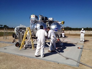NASA Planning Next Flight Tests for Morpheus ![]() December 16th, 2013 | WMFE- NASA successfully flew a planetary lander to a height of 164 feet in a test flight at the Kennedy Space Center Tuesday afternoon. [Morpheus fueling up before its test flight. Photo courtesy of NASA] The Morpheus Lander took off just after 1:30pm, for a one minute twenty second flight, reaching an altitude of 50 meters. NASA says the rocket propelled prototype touched down within three inches of its target in a rocky field designed to simulate the surface of the moon. Project manager Jon Olansen says the vehicle can sense and avoid hazards autonomously, unlike the lunar landers used in the Apollo program. “So instead of flying manually and trying to avoid them which is what happened back then, we’re trying to provide the technology to avoid those hazards, says Olansen. "And that can be done automatically and it can be done in any lighting conditions.” Olansen says this could allow a spacecraft to land in scientifically more interesting sites on the moon or other planets. In January NASA will begin the next set of flight tests, with the aim of getting the prototype to fly to an altitude of 250 meters and travel a distance of 500 meters. Future missions where the technology could be used include landing a humanoid robot or a rover on the moon. |
