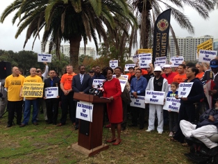 Demings Makes Her Campaign for Orange County Mayor Official ![]() January 9, 2014 | WMFE - Orange County mayoral candidate Val Demings is pledging to improve businesses and education if she's elected. The former Orlando police chief delivered the first speech of her campaign at Lake Eola Park on Thursday afternoon. [Photo: Demings says as mayor she wants to transform Orange County into a national leader.] Demings was surrounded by supporters, including her husband Orange County Sheriff Jerry Demings, as she launched her mayoral campaign at Lake Eola Park. "Businesses can't prosper. Our children can't learn. Our community can't grow if our government doesn't work for us." Demings emphasized transportation and public safety and spoke of her record as Orlando's first black female police chief. She said she cut violent crime by 40 percent. Demings also thanked her family including her mother, who worked as a maid, and her father, a janitor. She said their hard work inspires her to strive for a better Orange County. She faces a well-funded incumbent in Teresa Jacobs. Jacobs already has announced she'll run for re-election. |
