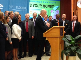 Governor Visits Orlando to Push for $100 Million for Tourism ![]() January 10, 2014 | WMFE - Gov. Rick Scott wants to nearly double what the state spends on tourism. He was in Orlando on Friday to announce he'll push for $100 million this spring for Visit Florida, the state's marketing agency. [Photo: The governor will push for the funding during the spring legislative session.] The governor made the announcement at Orlando International Airport. Some of the region's top tourism leaders from Universal Studios and other attractions joined him. He says Orlando is the nation's most-visited destination, and Florida is on pace for another record-setting year of tourism. "Thanks to our natural treasures, incredible attractions and hard-working Florida families the Sunshine State has experienced two consecutive years of record-setting visitation by travelers from more than 180 countries." Scott says the money will go toward marketing. He says his goal is 100 million tourists. Lawmakers expect a multi-million-dollar surplus when they reconvene this spring to work on the state budget. That's after several lean years. Scott also is pushing a $500 million tax cut. |