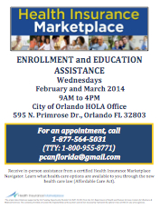 Spanish Speaking Navigators Move Out Into the Community ![]() A new effort to reach out to Central Florida Latinos needing help the online exchanges is putting Spanish speaking navigators in trusted locations. It's about bringing help into the community. [A Spanish speaking Health Insurance Marketplace navigator will be at the HOLA office once a week] The City of Orlando’s Hispanic Office for Local Assistance-otherwise known as HOLA- now has a Spanish speaking navigator on site every Wednesday and beginning this week- Hispanic Health Initiatives in Casselberry will have a Spanish speaking navigator on site on Fridays. Health Insurance Marketplace Project Coordinator Anne Packham says that’s important, because a lot of people trying to sign up for health insurance on their own get stuck trying to figure out their choices. “And it’s so overwhelming because they can have 50-60 plans available at their middle tier and they don’t know what questions to ask when they’re choosing a plan and we don’t want people to choose a plan and find out it’s the wrong one,” she says. Packham says Latinos know the staff, locations and bus routes for locations like HOLA, Hispanic Health Initiatives and the Hope Community Center in Apopka, so Spanish speaking navigators in these locations are more accessible to the Hispanic population . |