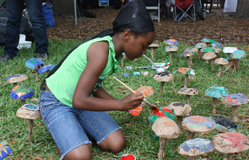 Photo: Painting paper bag mushrooms, cfearthday.org |