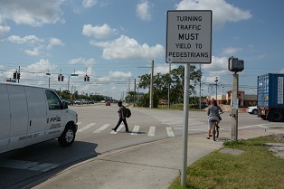 Report: Orlando Metro Area Still Ranked Most Dangerous for Pedestrians ![]() May 20th, 2014 | WMFE, Orlando- A report out Tuesday ranks Metro Orlando the worst in the nation for pedestrian safety. According to the Dangerous By Design report commissioned by the National Complete Streets Coalition, more than 47,000 pedestrians died on US roads between 2003 and 2012- and the hmost dangerous streets are in Central Florida. [A pedestrian crosses East Colonial Drive at Alafaya Trail. Photo: Ernest Duffoo; WMFE] The report ranks Orlando- Kissimmee the most dangerous place to walk in the United States, according to its Pedestrian Danger Index, or PDI, which is a measure of the likelihood of a pedestrian being struck and killed by a car. According to the report, Metro Orlando has a PDI four times higher than the PDI for the rest of the US. The three other most dangerous metro areas for pedestrians are Tampa- St Petersburg-Clearwater; Jacksonville; and Miami-Fort Lauderdale-Pompano Beach. Billy Hattaway was appointed to lead the Florida Department of Transportation's bicycle and pedestrian focused initiative by FDoT secretary Ananth Prasad after the last Dangerous by Design report came out in 2011. That report also put metro Orlando at the top of the list for dangerous places to walk. Hattaway says in the last three years, FDoT has taken steps to tackle the problem, including establishing the state's first Pedestrian and Bicycle Strategic Safety Plan, identifying crash hotspots and carrying out high visibility enforcement for drivers. He says the risk for pedestrians is much higher on roads with speed limits over 40 mph. “The speed reduction is very difficult- I would never say impossible because the secretary has assured me that if we have to do radical things to get the speeds down through intersections, we’re willing to look at those.” Potential engineering fixes include installing more mid-block pedestrian crossings. Hattaway says the next Dangerous by Design report three years from now should show positive results from pedestrian safety campaigns like Central Florida’s Best Foot Forward coalition. "I look at in terms of our initiatives and just like with bike walk central Florida and our Best Foot Forward initiative, we didn't launch that until we were pretty well into 2012 and so it takes time, it takes time to see results," he says. Best Foot Forward is working with law enforcement, schools and local governments in Central Florida to encourage drivers to yield to pedestrians in marked crosswalks. Statewide, 5,189 pedestrians were killed in accidents involving cars in the decade to 2012. 583 of those deaths were in Lake, Orange, Osceola and Seminole counties. In a press release Tuesday, Best Foot Forward said some of the recommendations for improving pedestrian safety have already been taken up by Orange County and the City of Orlando. The Central Florida transportation planning agency, Metroplan Orlando, has adopted a pedestrian safety action plan for Seminole, Orange and Osceola Counties. County authorities are also working with the state department of transportation on engineering fixes to improve safety for walkers- including improving lighting on major corridors and around SunRail stations. You can find a link to Dangerous By Design's pedestrian fatality map here |