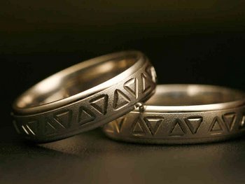 Photo: Same-sex wedding rings engraved with triangles, David McNew/Getty Images , npr.org |